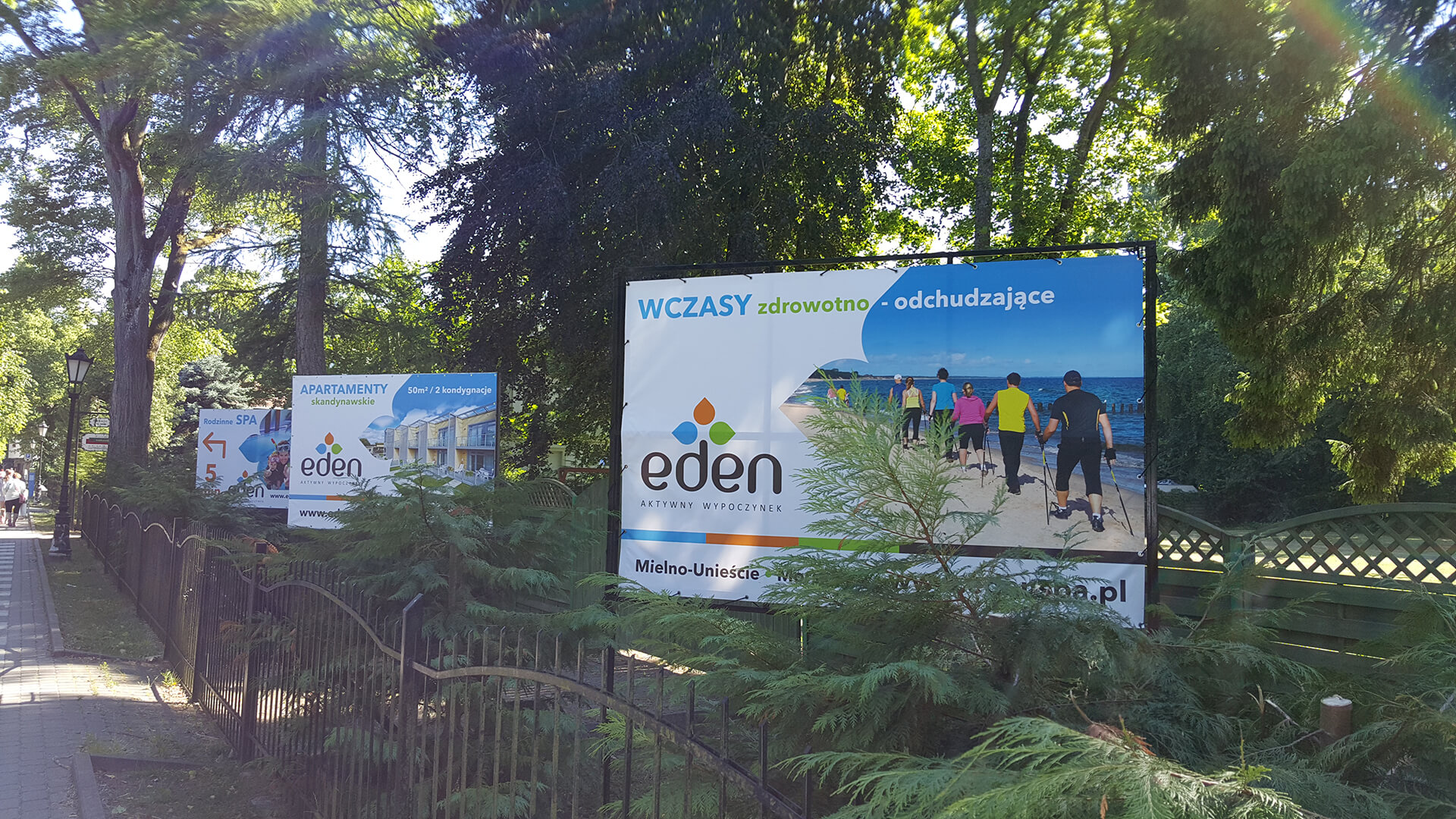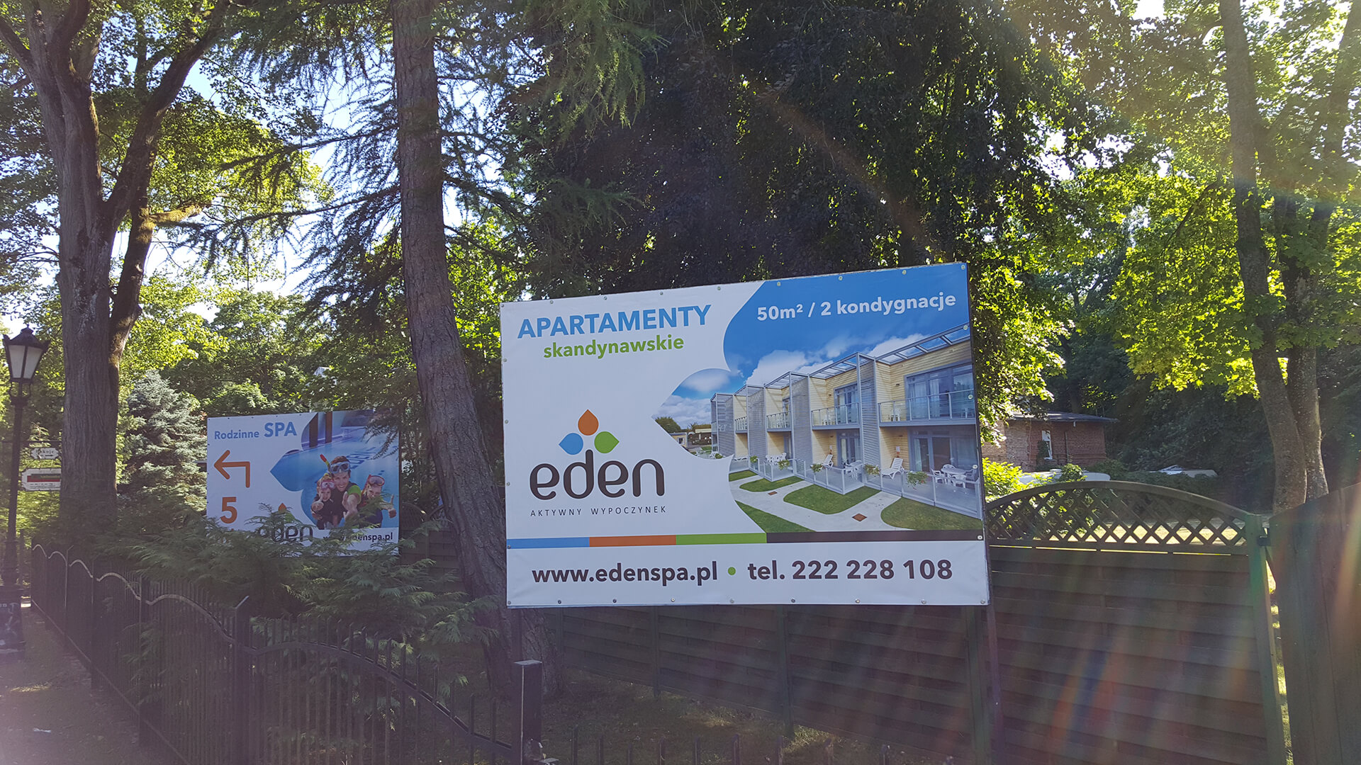 Wykonaliśmy i zamontowaliśmy banery reklamowe na miejskich tablicach ekspozycyjnych w Mielnie. Wielkoformatowe wydruki prezentują ofertę zabiegów i podkreślają relaksacyjny charakter przestrzeni. Materiały promujące strefę SPA hotelu Eden są doskonale widoczne dla turystów i mieszkańców. Strategiczne umiejscowienie banerów w przestrzeni miasta skutecznie przyciąga uwagę potencjalnych klientów.