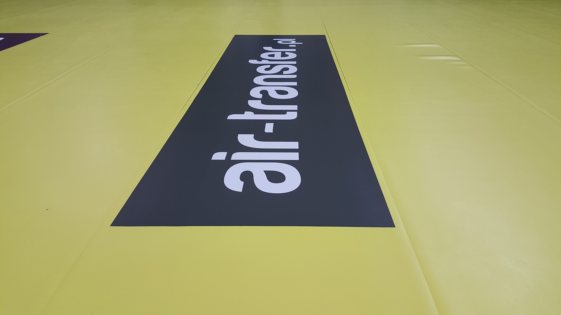 Na parkiecie koszalińskiej Hali Widowiskowo Sportowej wykonaliśmy oznakowanie reklamowe dla firmy Air Transfer. Wykorzystanie specjalistycznej folii podłogowej gwarantuje trwałość grafiki mimo intensywnej eksploatacji boiska. Logo sponsora, widoczne podczas wszystkich wydarzeń sportowych, stanowi efektywną formę promocji