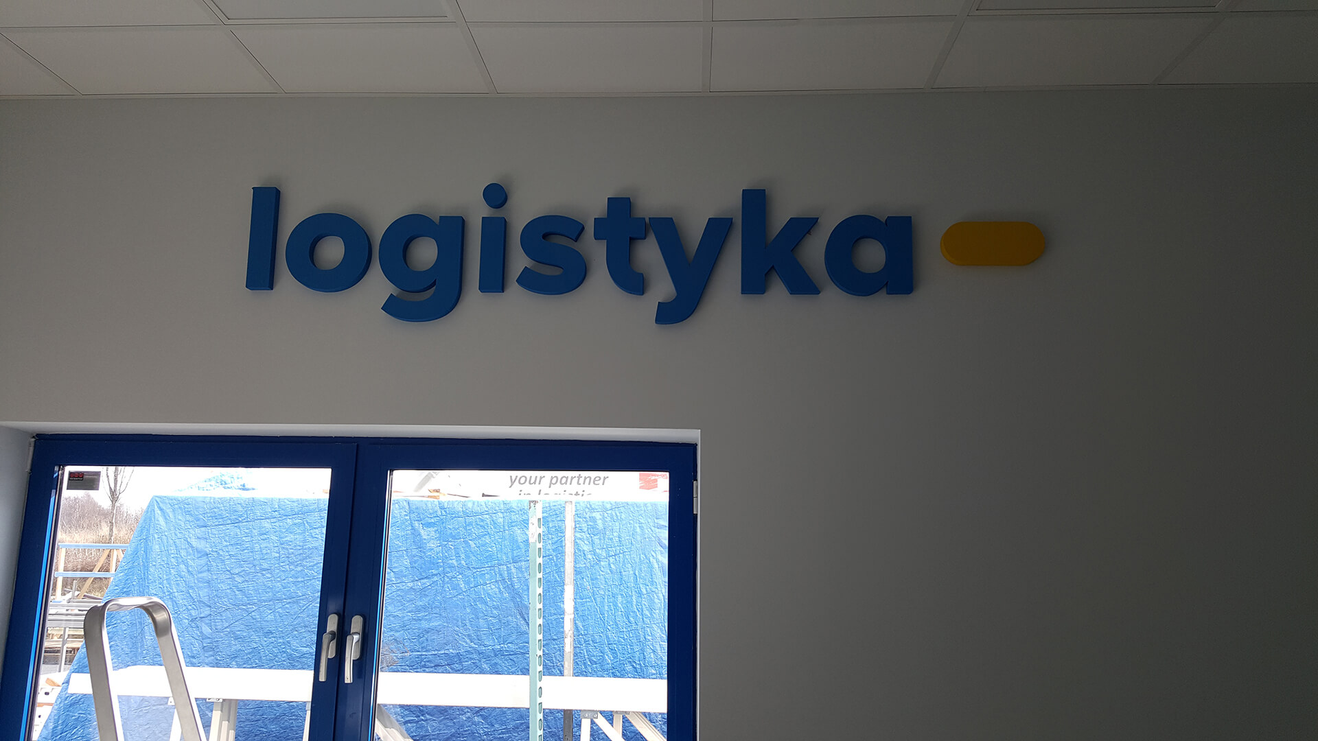 W biurze marketu budowlanego zamontowaliśmy trójwymiarowy napis wykonany ze styroduru. Litery zostały profesjonalnie pomalowane i precyzyjnie zamocowane na ścianie. Przestrzenna forma napisu stanowi charakterystyczny element identyfikacji wizualnej przestrzeni biurowej.