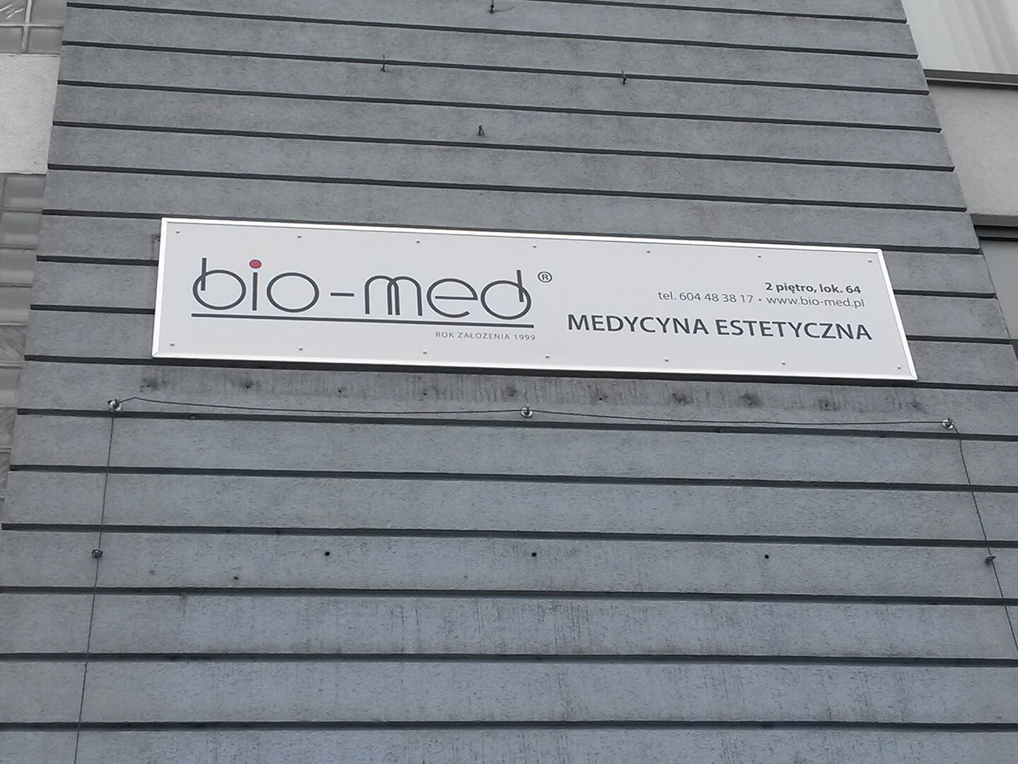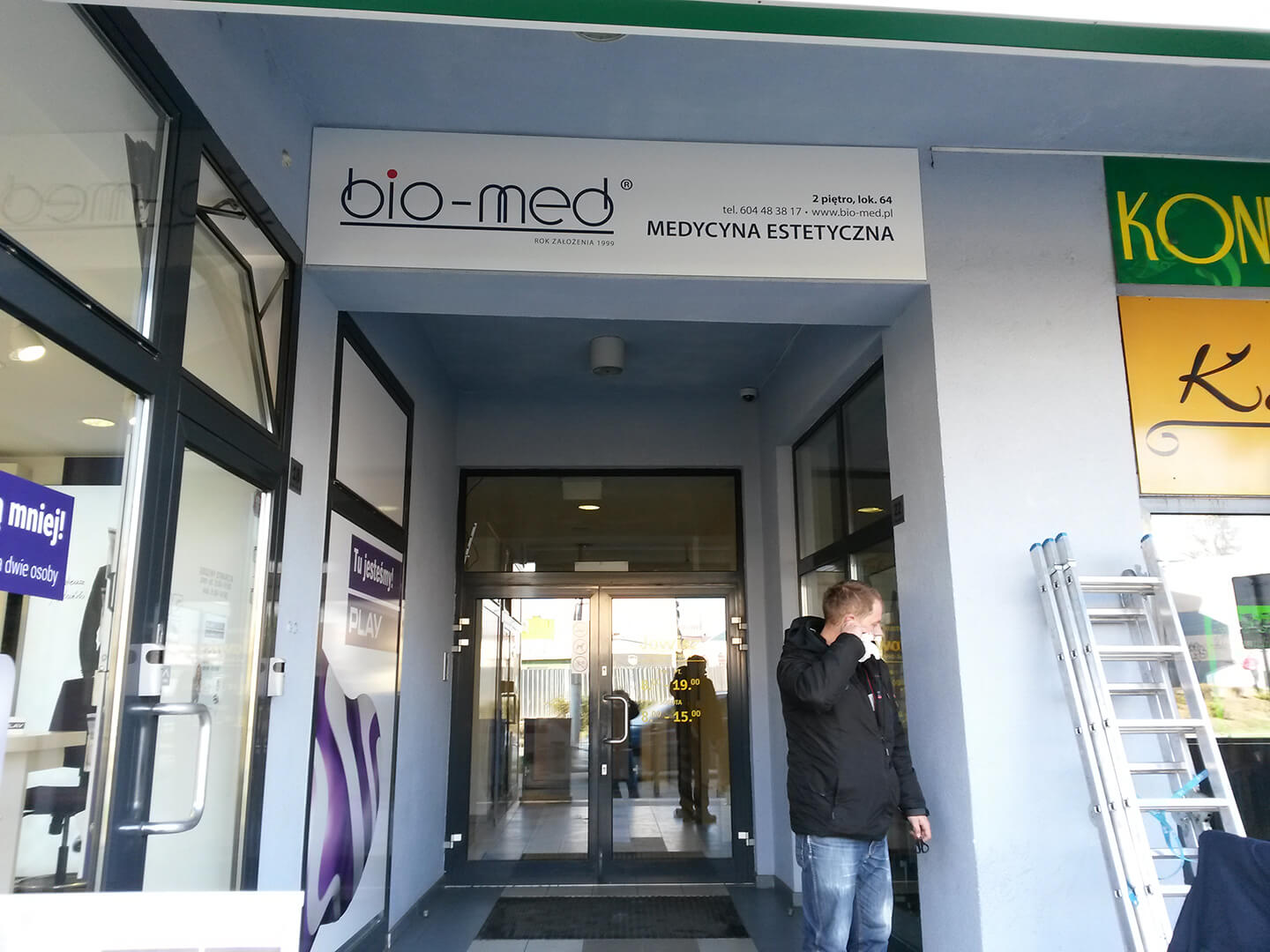 Wykonanie i montaż płyt z grafiką dla firmy Bio-Med na elewacji Centrum Handlowego Jowisz w Koszalinie. Wykonaliśmy płyty z poliwęglanu komorowego oraz płyty kompozytowej dibond, które zostały oklejone wysokiej jakości folią polimerową z grafiką. Całość oprawiono w stylowe ramki aluminiowe, nadające instalacji profesjonalny wygląd. Efekt końcowy skutecznie przyciąga uwagę klientów.