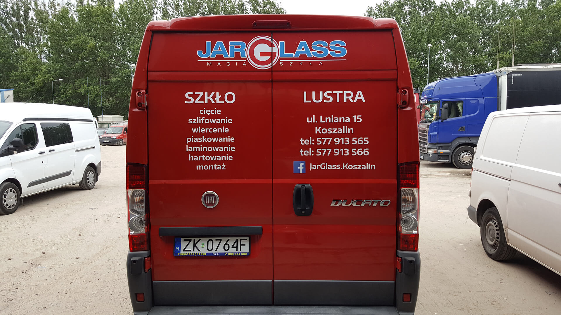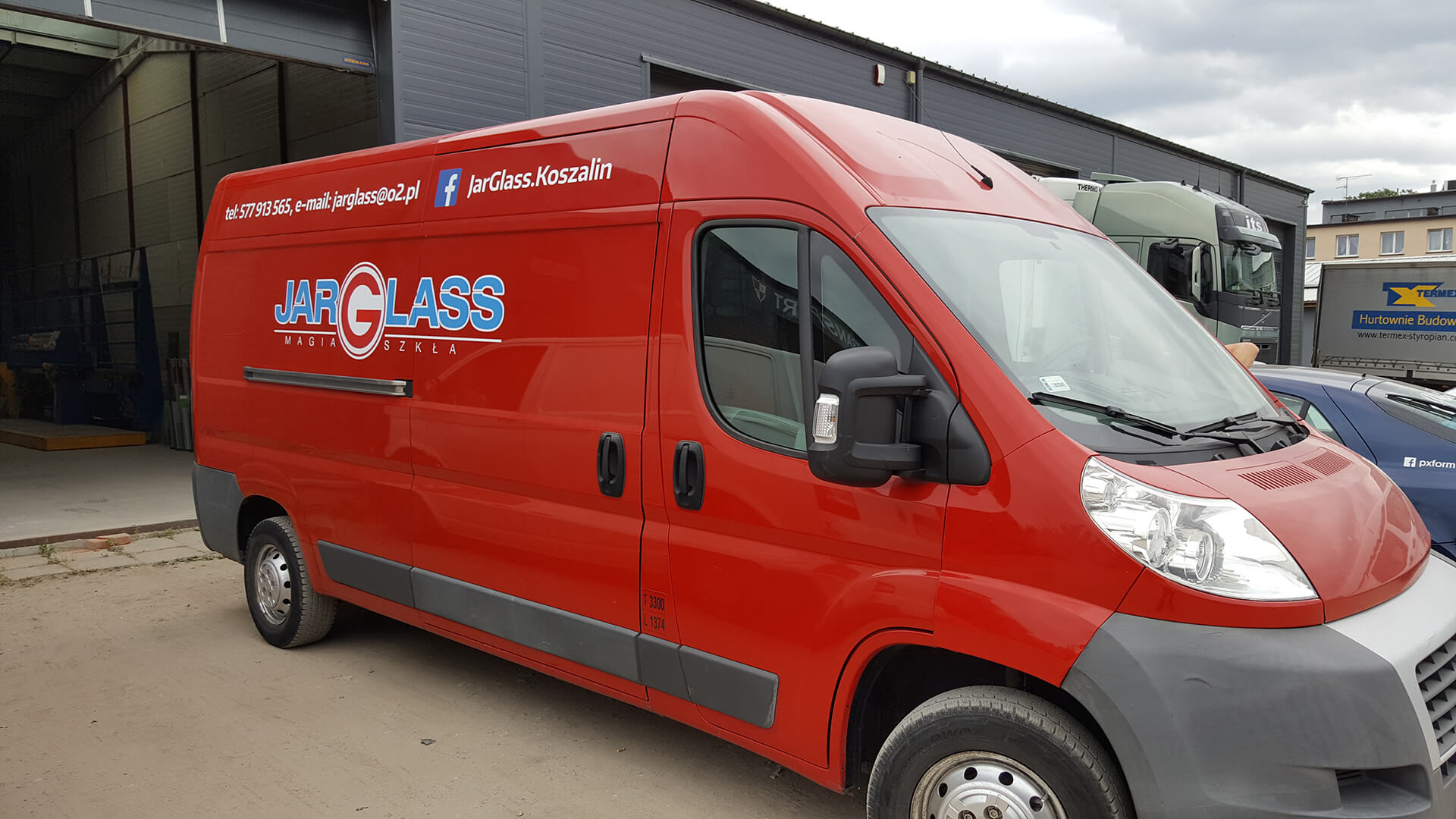 Na samochodzie firmowym wykonaliśmy oklejenie łączące grafikę drukowaną z elementami wyciętymi z folii ploterowej. Minimalistyczny projekt, nawiązujący do charakteru firmy zajmującej się obróbką szkła, opiera się na przejrzystej i czystej kompozycji. Efekt końcowy podkreśla profesjonalny charakter usług Jar Glass - magia szkła.