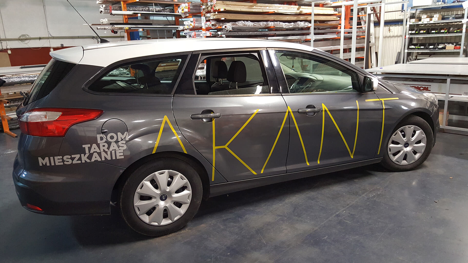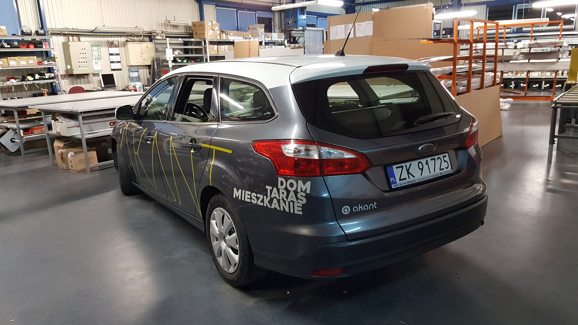Kompleksowe oklejenie pojazdu firmowego z wykorzystaniem najwyższej jakości folii wylewanej. Precyzyjne wykonanie pozwoliło uzyskać efektowną i trwałą reklamę mobilną, podkreślającą profesjonalny wizerunek marki Akant