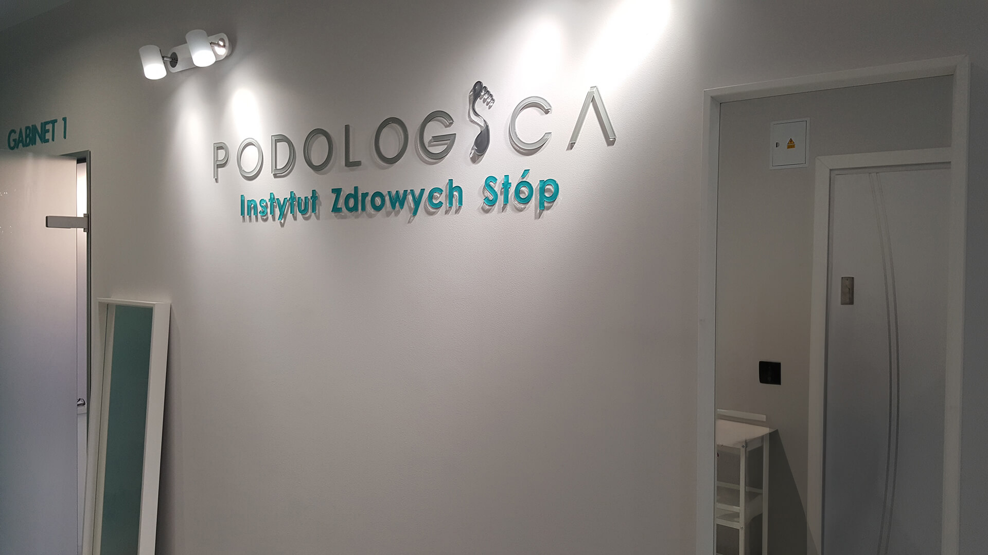 W gabinecie podologicznym zamontowaliśmy przestrzenne litery wykonane z pleksi podklejonego folią polimerową. Eleganckie, trójwymiarowe elementy podkreślają profesjonalny charakter miejsca. Precyzyjny montaż na ścianach zapewnia estetyczną prezentację logotypu w przestrzeni gabinetu.